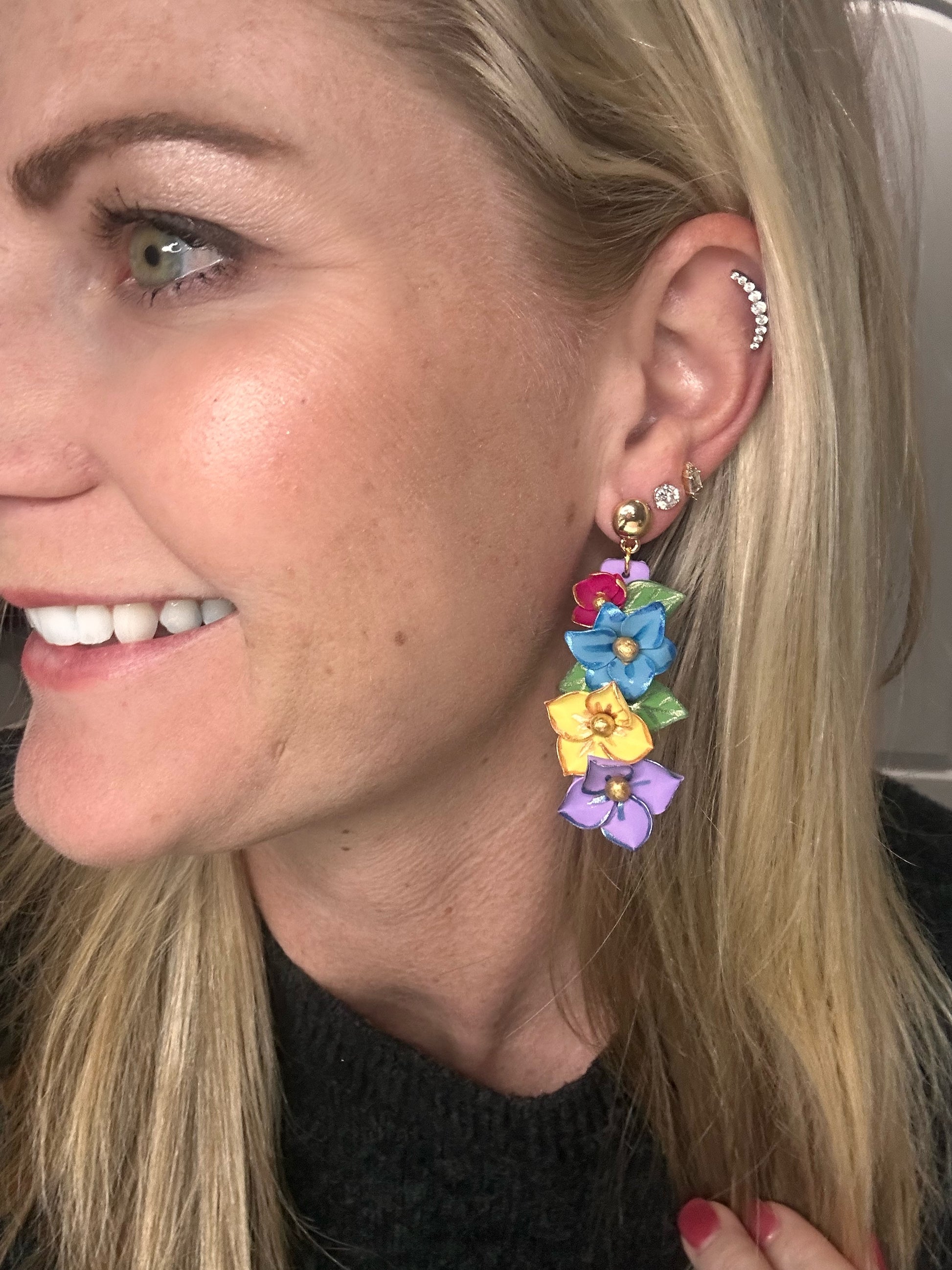 These FABULOUS float flower earrings will be the talk of Mardi Gras. Each petal is hand sculpted to create Mardi Gras float flowers that look like they just came off a float! Hande made of polymer clay, these earrings are lightweight and will go perfectly with any parading outfit.